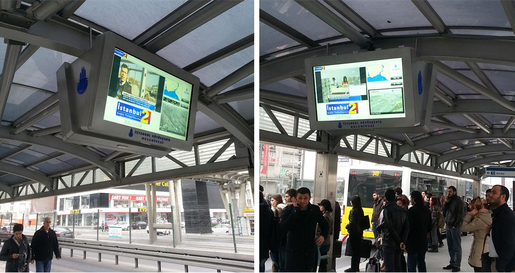터키 이스탄불 버스 정류장에 현대 옥외용 디지털 사이니지가 설치되어 정확한 정보와 효과적인 홍보를 진행하고 있다.